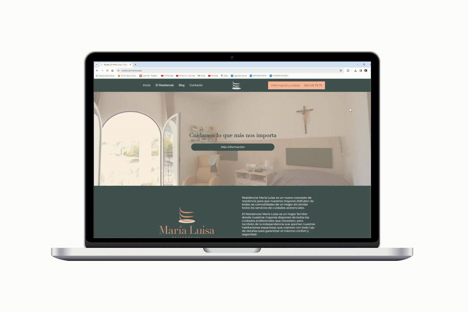 El trabajo para Residencial María Luisa incluye una web corporativa y la gestión de redes sociales, promoviendo una comunidad activa y con influencia en el ámbito municipal, destacando su compromiso en el sector así como el bienestar de los usuarios del centro privado.